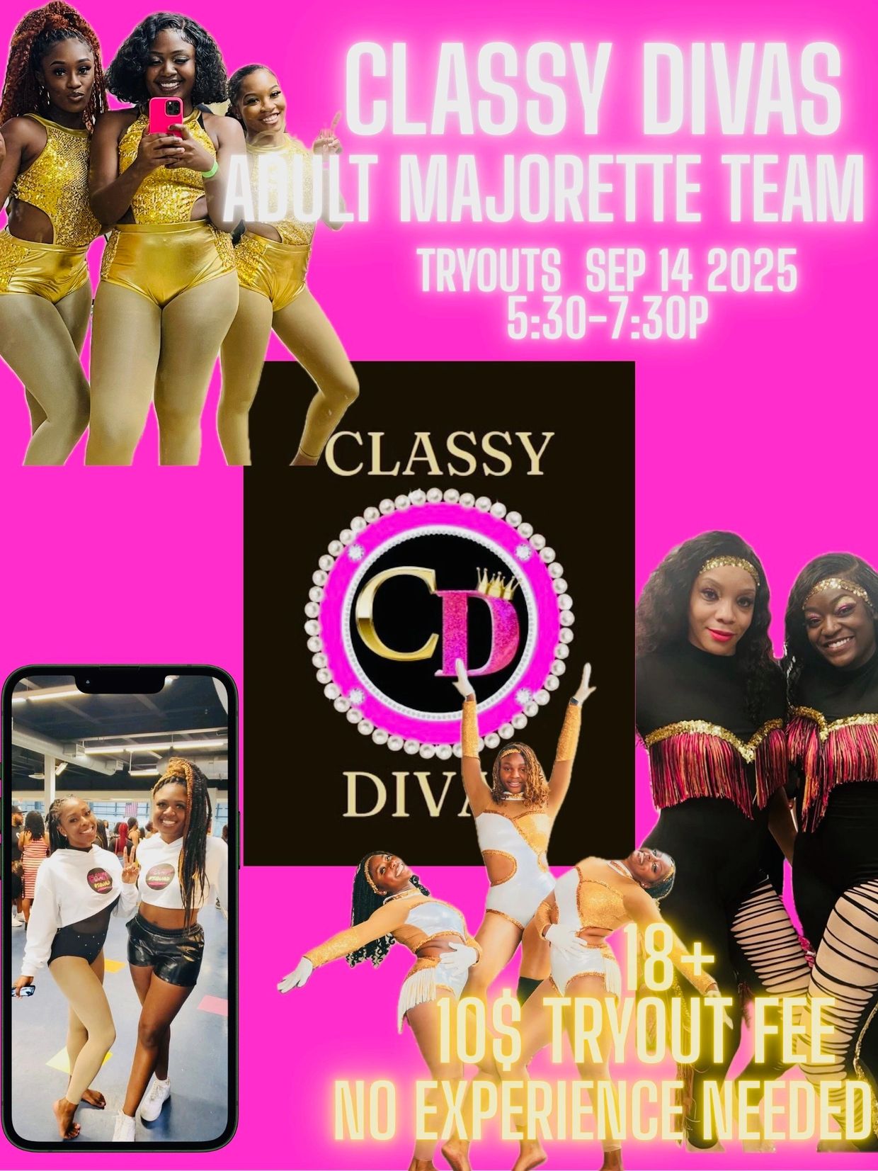 Classy Divas is excited to announce that we are now holding tryouts for our new Adult Majorette Team! If you are 18 years of age or older and have a passion for dance and twirling, we encourage you to come out and show us your skills. Our team will perform at various events and competitions throughout the year, providing a fun and rewarding experience for members. Don't miss this opportunity to join a dynamic and talented group of performers. Sign up for tryouts today!